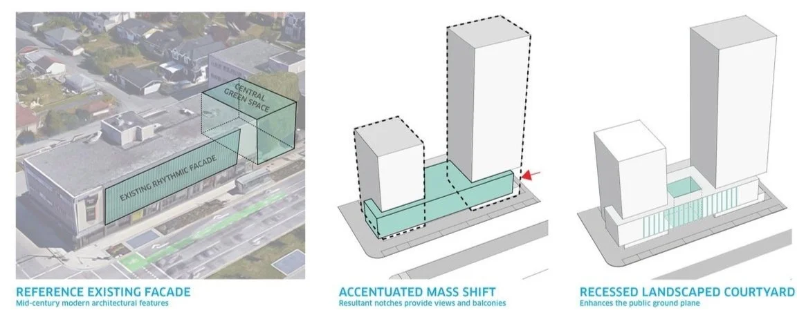 The redevelopment of the site is guided by a series of core principles that were established to ensure the best use of the site and to provide complementary benefits to the immediate and broader community. These have been used to inform the overall concept and reflect a shared understanding of the role of the proposal within the Cambie Corridor Plan.