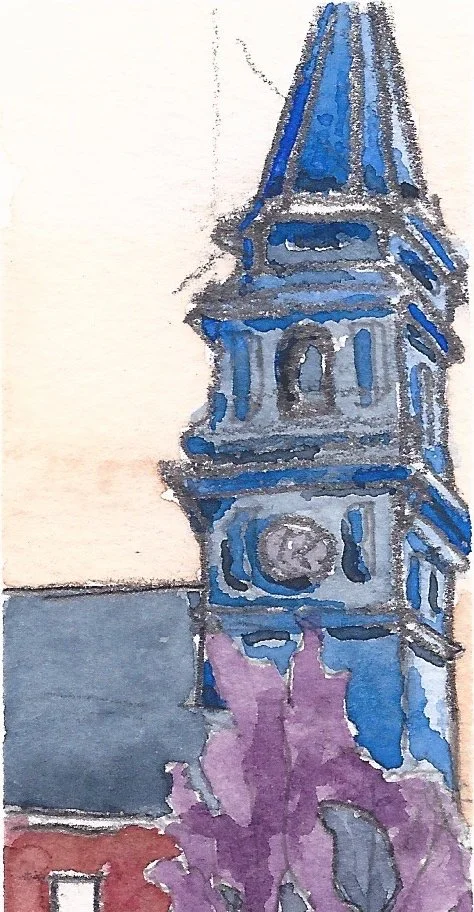 Unlike other fast mediums, watercolour allows me to distill a subject not as an isolated object, but as something part of a context. With this simple, yet emotive medium, I have a means of studying architecture in relation to its setting; honing-in on the less noticeable details, and looking at how materials appear from close-up, and from a distance. Light and colour breathe life and weave a nostalgic quality into a scene.
